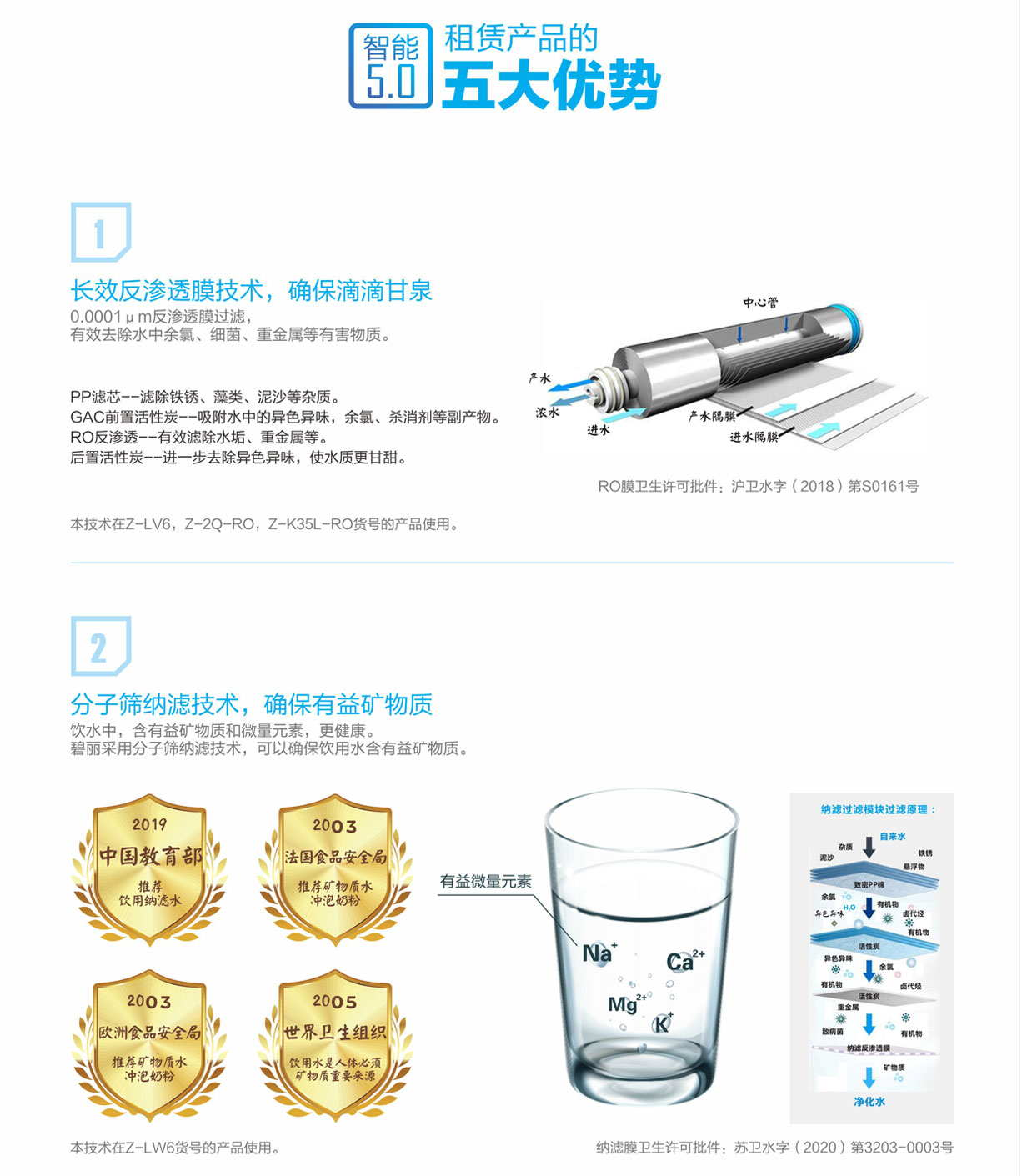 純凈水指的是不含雜質的H?O,簡稱凈水或純水,是純潔、干凈,不含有雜質或細菌的水,市場上出售的太空水,蒸餾水均為純凈水。不少消費者因懼怕水污染問題而選擇飲用過濾后的純凈水,他們擔心水中雜質、礦物質會給身體造成不必要的負擔,而且有的礦物質人體不一定能吸收,如果長期積聚體內,會直接影響人體健康。然而,有科研數據表明,盡管純凈水短時間內能夠幫助排泄人體內的毒素,但長期飲用時可能會導致體內鉛的含量超標。因為鈣和鉛在人體中是競爭關系,一方增多,另一方就會減少,反之,一方減少,另一方就會增多,純凈水中沒有鈣,人體就會吸收大量的鉛,從而導致人體內含鉛量超標。過濾純凈水的逆滲透膜雖然去除了水中的細菌雜質,但也把水中的對人體有益的微量元素過濾掉了,長期飲用會導人體的微量元素缺乏,引起少年兒童發育不良,引起老年人的各種微量元素缺乏癥。碧麗智能4.0飲水設備,能夠有效過濾有害雜質的同時也能保留有益礦物質,為消費者提供安全、健康的飲水生活!有益礦物質包括:鈣:是骨骼和牙齒的營養素;鐵:是造血的重要元素;鎂:可增強骨骼肌肉的健康;鈉:能保持體內水分平衡,有助于肌肉健康;鋅:是酶的組成部分,具有重要的生理功能。飲用水中的有益元素是能夠被人體直接吸收的,消費者無需過度恐慌或者擔憂。集智能無菌、智能保鮮、智能換芯、智能芯片四大產品優點的智能4.0系列產品能夠為您的健康飲水生活保駕護航。歡迎致電碧麗客服熱線了解產品詳情,400-800-0725,我們將有專員跟進您的飲水需求。
