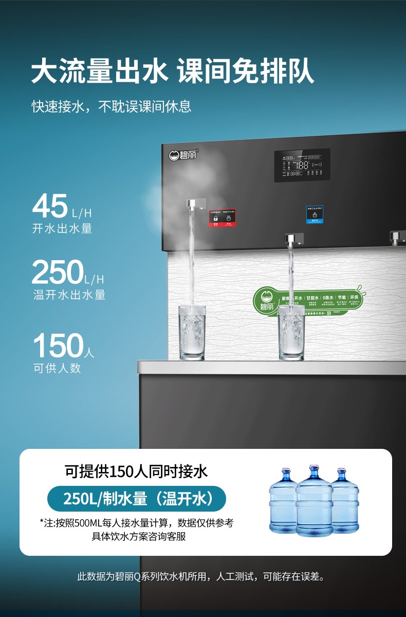 從獲悉用戶需求,前期調研,到跟進設備管道設置及安裝,碧麗的工作人員全程跟進,工作一絲不茍,當前往梅州市公安局交通警察支隊興寧考場的市民喝上了健康、安全有保障的碧麗溫開水時,是對我們全體碧麗人大的褒獎!在獲悉梅州市公安局交通警察支隊興寧考場的飲水需求后,我司的飲水專員迅速跟進,針對其實際情況提供了好的飲水解決方案:碧麗管線機搭配碧麗商用反滲透凈水機。這個方案的優勢有很多,碧麗管線機小巧玲瓏,安裝所需位置小,通過碧麗商用反滲透凈水機過濾后的水水質甘甜可口,開水、溫水兩大選擇,充分滿足用戶需求。碧麗商用反滲透凈水機,一體機設計,模塊組合,安裝簡單,占地空間小。設備采用超靜音設計,制水噪音少于50分貝,LED顯示屏還能夠顯示設備的運行狀態,科技感滿滿的。很多消費者對溫開水存在疑慮,認為其是未煮開且單純加溫到相應溫度的水。然而,碧麗直飲水設備提供的溫開水是100%煮開后再降溫到適宜溫度,出水水質有保障還能養護腸胃,35℃~40℃的溫水,是人體胃腸的“好朋友”。碧麗,中國公共飲水行業開創企業,20年行業積淀,擁有行業全的產品線,產品種類多、性能強,大型標桿工程遍布全國各地!碧麗,溫開水飲水機研發企業,并致力于推廣溫開水的健康性,一心為全人類的飲水健康做奉獻。碧麗貼心服務+細致用心=專注!歡迎撥打碧麗全國客服熱線:400-800-0725,我們將竭力為您提供優的飲水方案,為健康飲水生活加分!