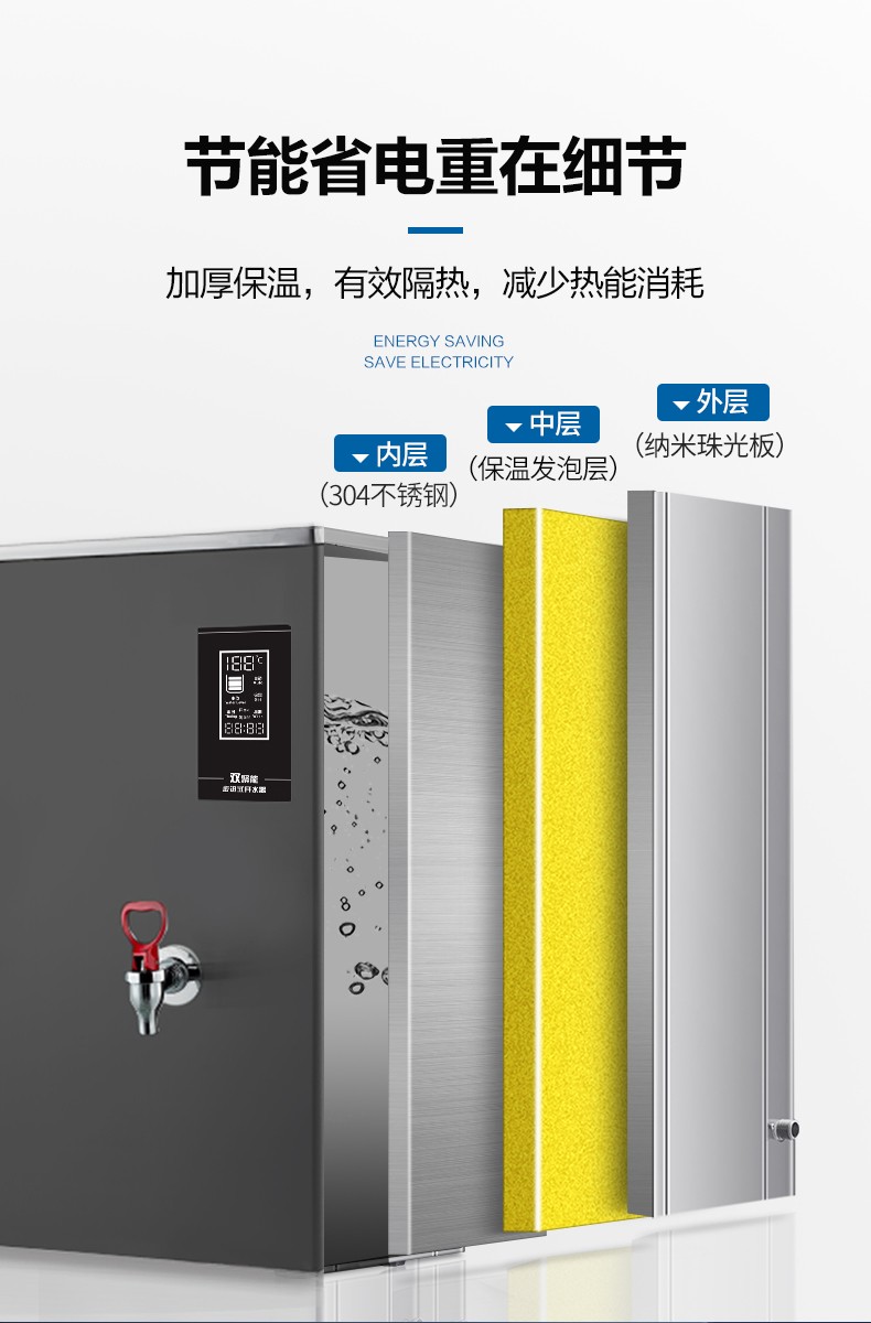 熱膽容量:40升  電源功率:6kW,380V3N-50Hz  出水方式:兩開  供水量:開水90升/時  外形尺寸:56.5*25.5*71.5cm  適用水源:市政自來水